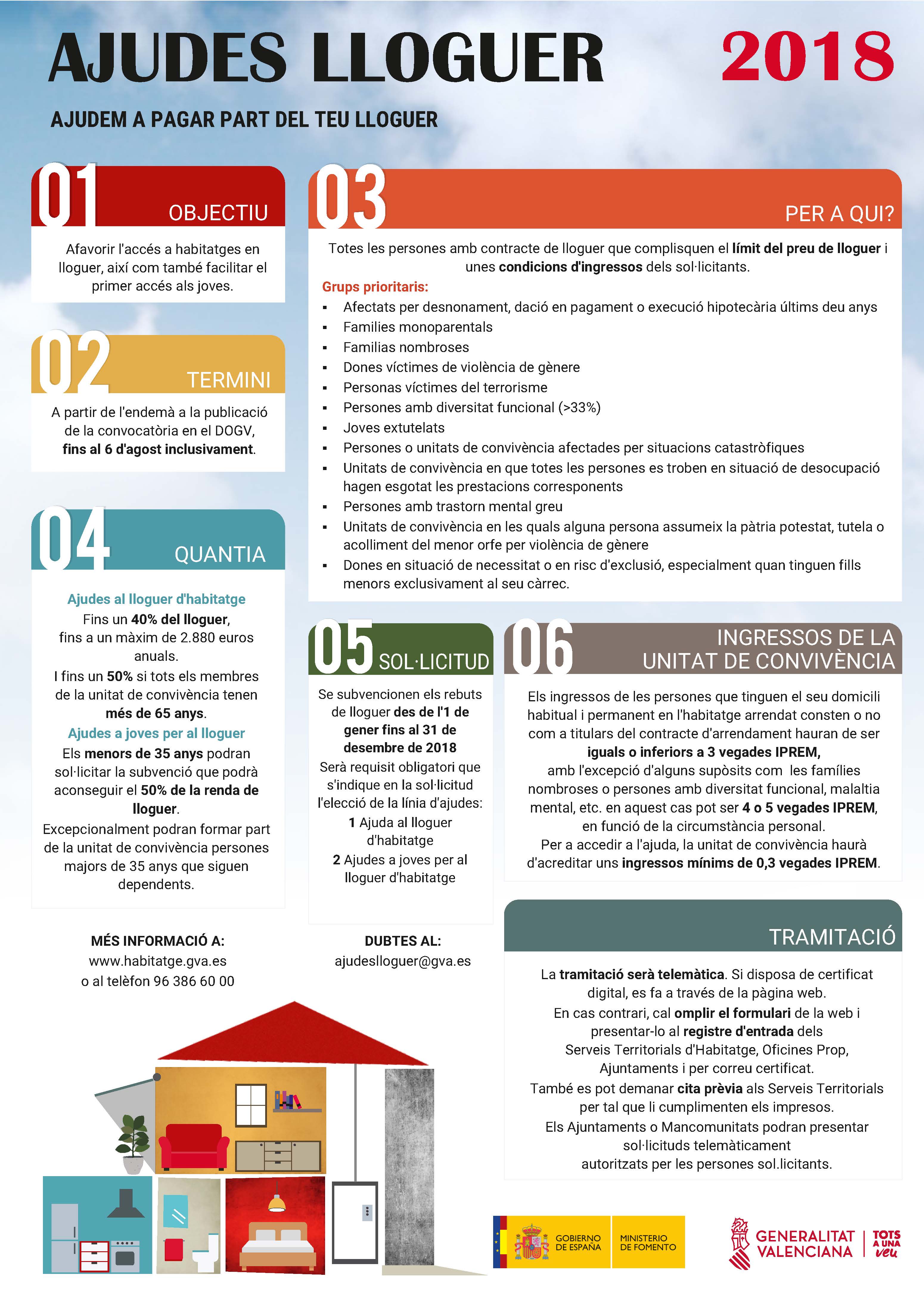 Més informació sobre les ajudes al lloguer cridant al telèfon 012 (963866 000) o en:
