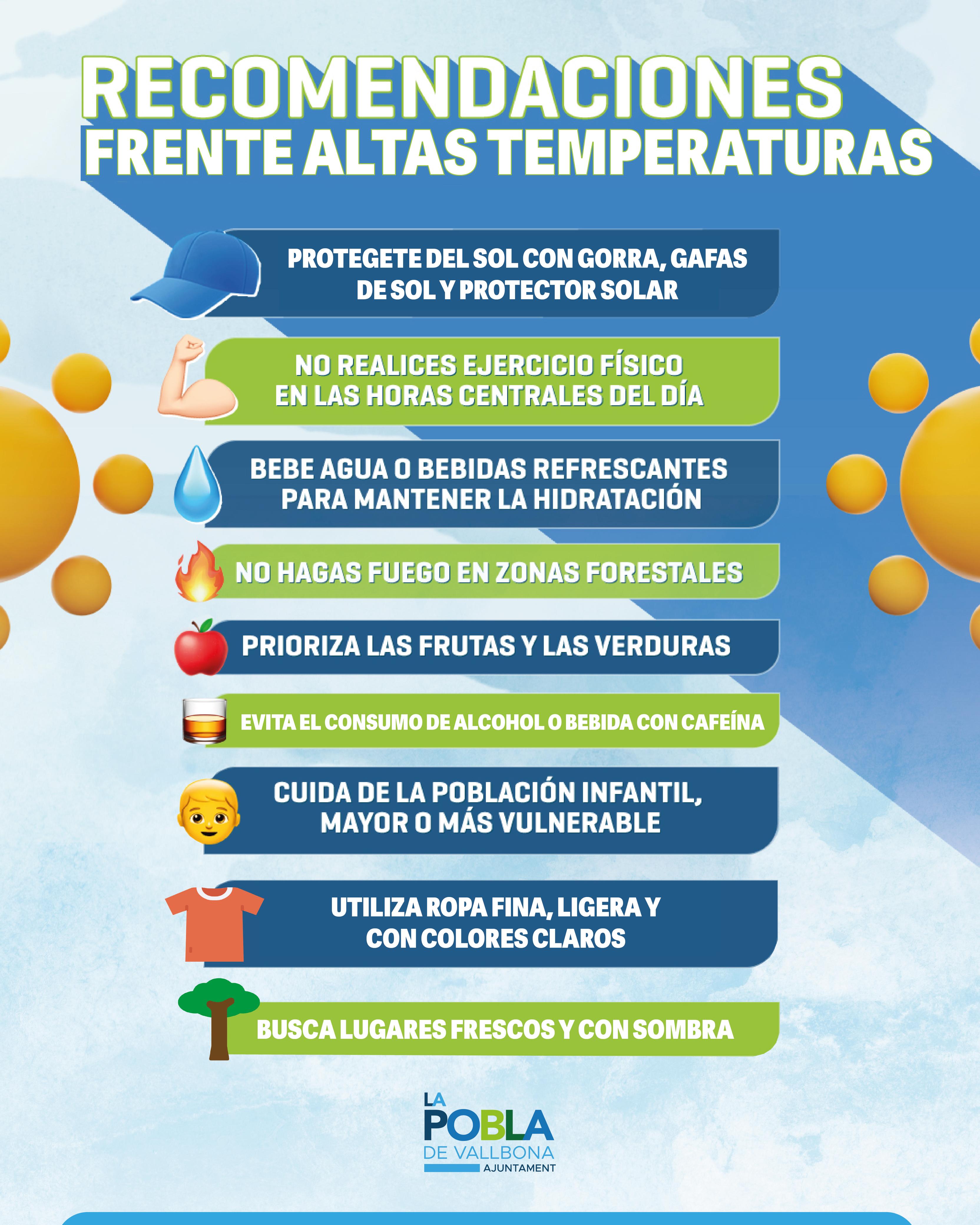 ?? Recuerda usar ropa fresca y de colores claros, refrescarse varias veces al día y evitar actividades físicas en las horas centrales.