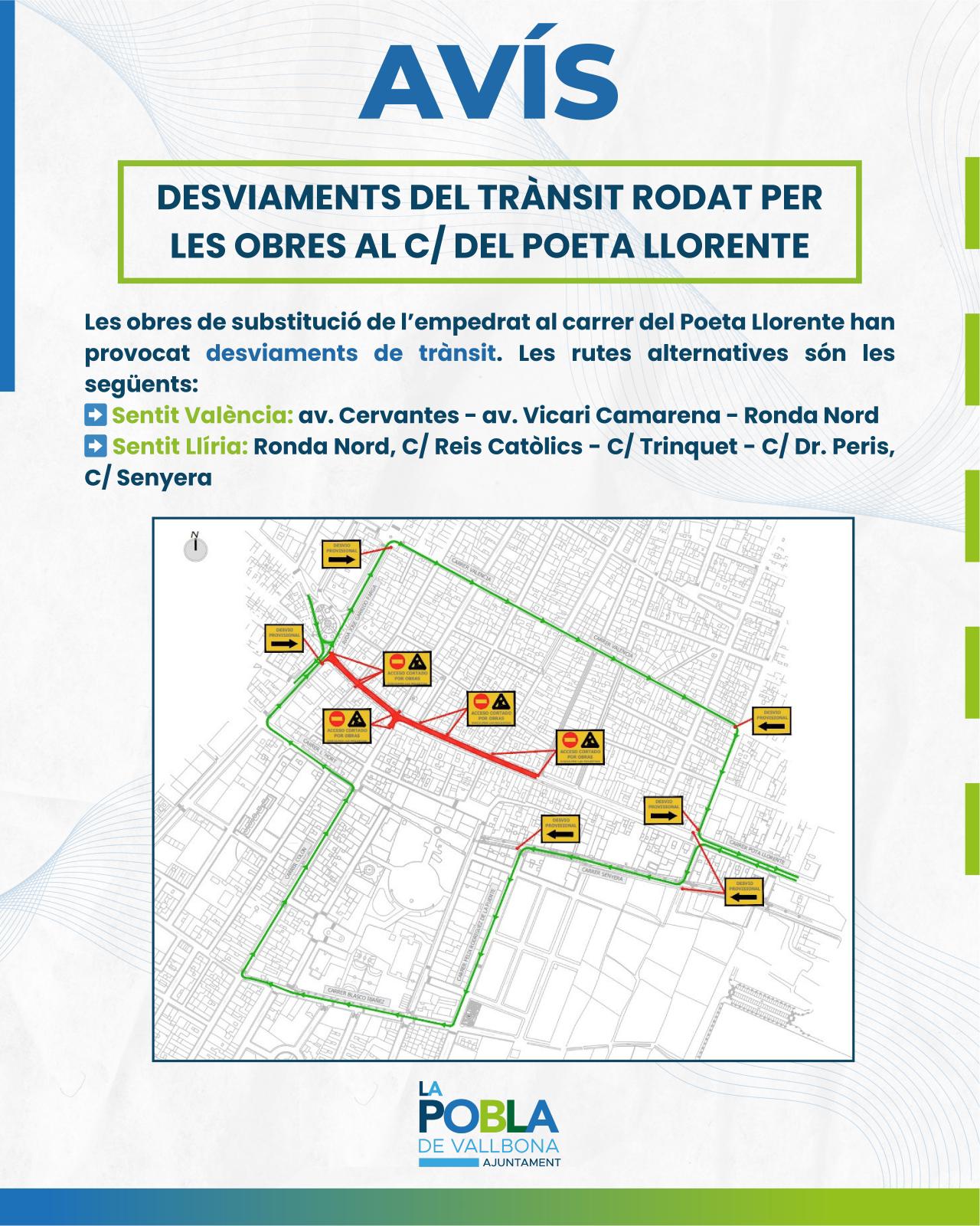 ?️ Les obres de substitució de l'empedrat al carrer del Poeta Llorente, en el tram comprés entre la plaça Vicent Alba i el carrer de la Parra, han començat esta setmana i tindran una duració de quasi tres mesos.