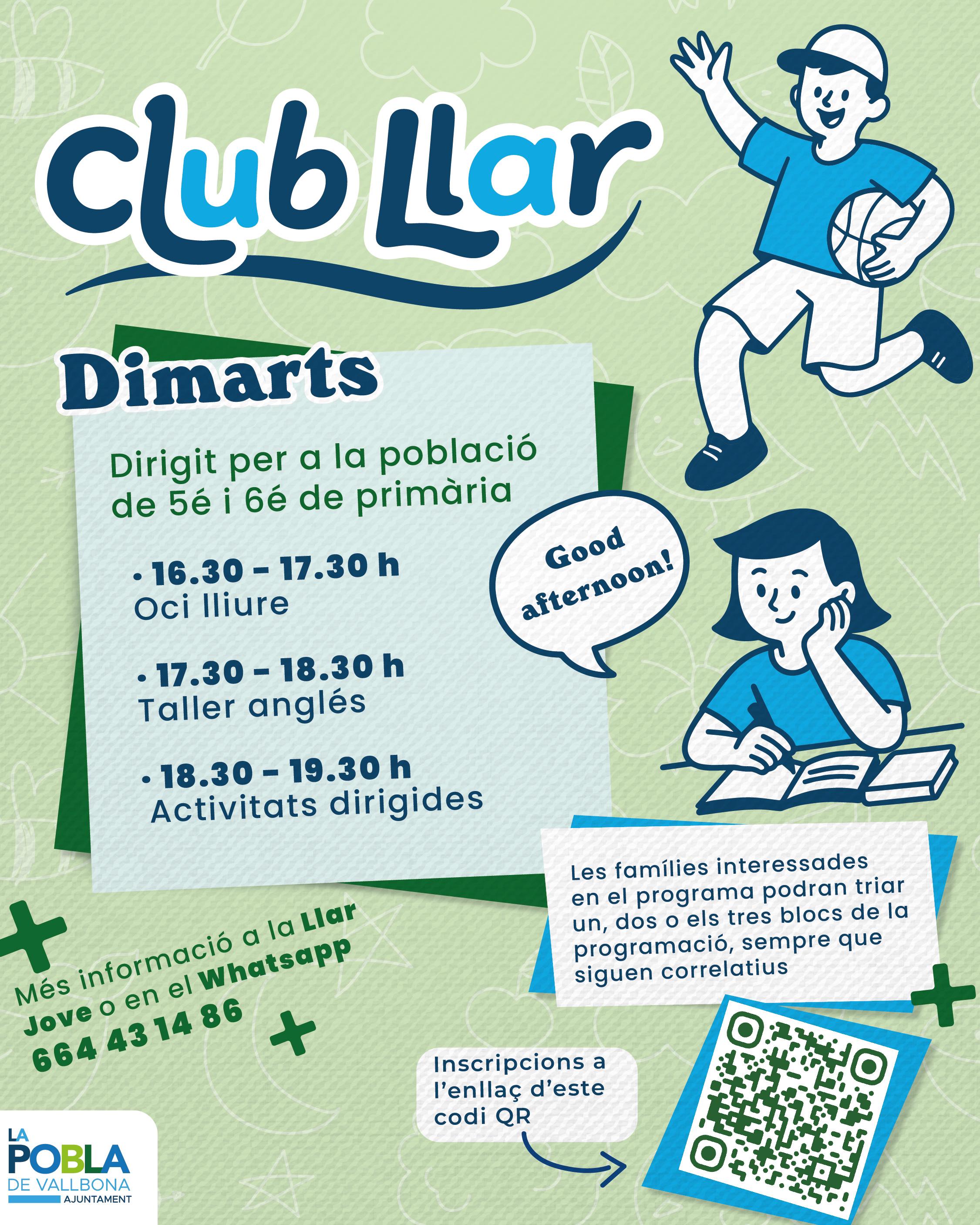 ? El Club Llar està pensat per a la població de 5é i 6é de Primària, amb l’objectiu que comencen a familiaritzar-se amb la Llar Jove. Hi haurà taller d’anglés, tornejos de ping-pong i futbolí, entre d’altres.