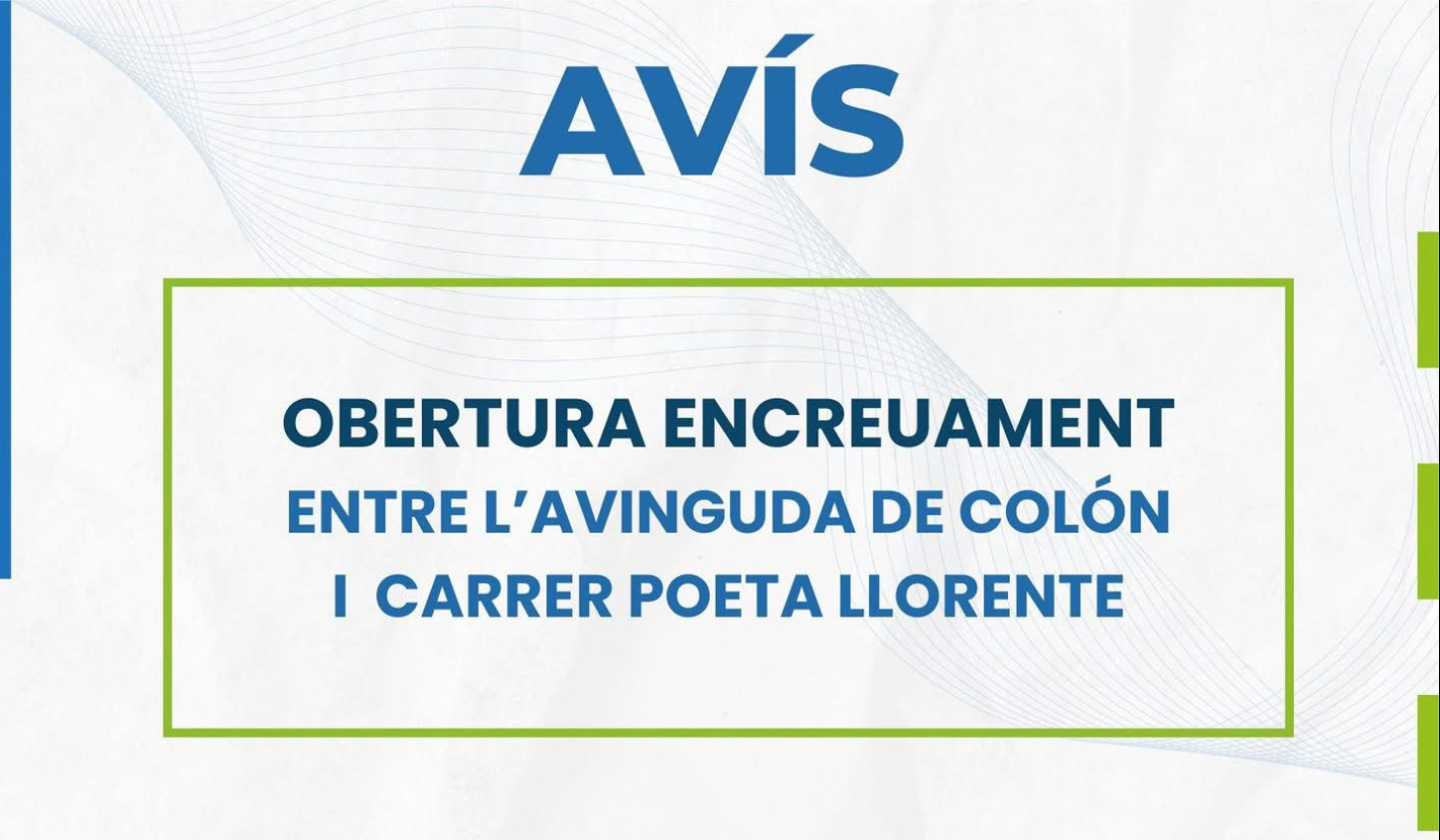 ? OBERTURA ENCREUAMENT AV COLÓN I C/DEL POETA LLORENTE