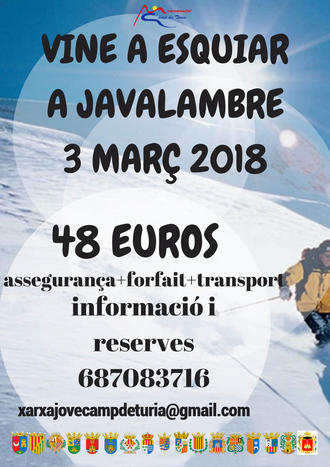 Els 17 municipis que formen la Mancomunitat del Camp de Túria a través de les Regidories de Joventut han organitzat un Viatge Comarcal a la neu, concretament a Javalambre el 3 de març.