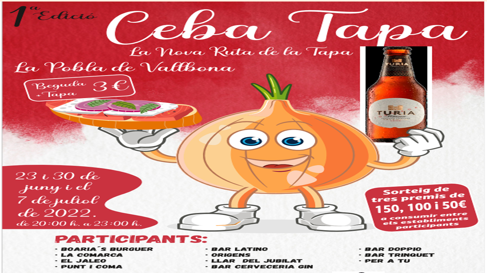 Sorteig de 3 locales de 150, 100 i 50 euros a consumir entre los establecimientos participantes